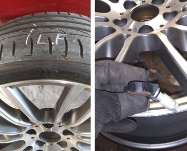 We bring your wheels back to our facility. We remove the tires and TPMS and inspect them for any issues. While doing this we label the tires Left Front or L.F. and label the TPMS sensors so we know exactly where to install them back on your vehicle so there will be no issues. In short.. we put things back were we found them!